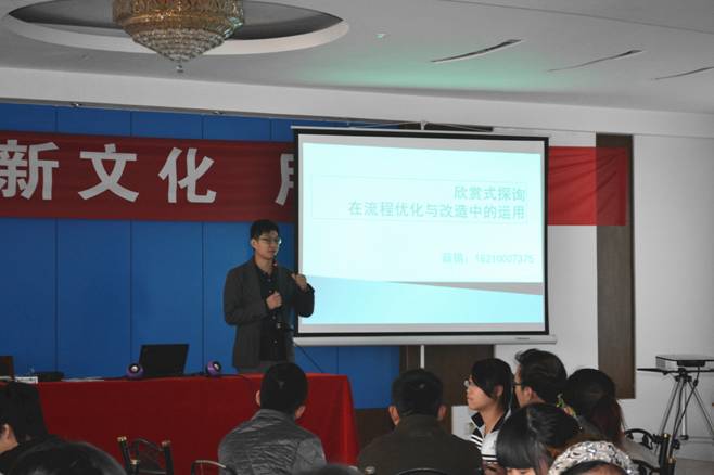 本次活動的主題是“欣賞式探尋”,分別從“發現、夢想、設計、實現”四個部分展開。活動的形式采用比較新穎的引導式,而非傳統的講座式,易于在場的聽講人理解與接受。從活動的內容上來看,比較貼近我們的日常工作,它能從一個層面跳躍到另一個層面讓我們去發現自己,發現組織,進而闡述我們所持的夢想和對組織的希望,由此設計出我們思維當中所希望看到的景象,最終實現我們所匯聚的偉大夢想。