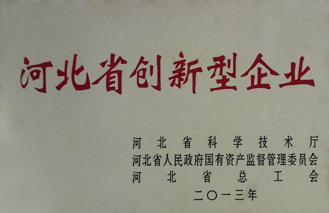 2013年5月公司收到河北省科技廳印發的《關于開展河北省創新型企業評審工作的通知》,技術工程部根據通知要求組織相關材料申報創新型企業,于6月上報到滄州市科技局,初審通過后,7月公司副總經理劉海軍、技術工程部經理王政、科員王亞君在石家莊參加答辯,并順利通過獲得河北省創新型企業榮譽稱號。