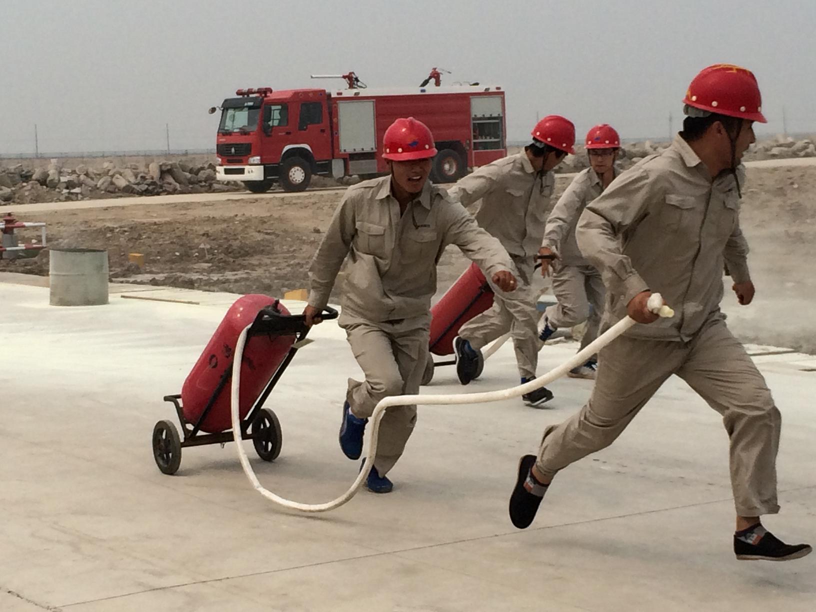 比賽共設三個項目:滅火器使用比賽、消防水帶使用比賽、空氣呼吸器及防化服穿戴比賽。健康安全環保部經理孫長輝任總指揮,公司副總經理劉立新現場指導,中捷安監局科長宋魁作為嘉賓也來到了現場。