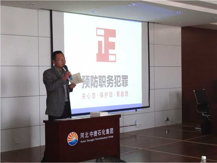 黃驊市檢察院唐科長受邀在會上為參會人員普及“反腐倡廉”知識。唐科長結(jié)合國家近兩年的反腐倡廉形勢,肅清貪污腐敗的典型案例,向參會人員講授了貪污腐敗行為對企業(yè)、家庭、個人帶來的嚴(yán)重后果,并詳細(xì)闡述了職務(wù)犯罪的種類及特點(diǎn),對于概念模糊的貪污受賄行為做了法律上的明確界定與說明。最后,集團(tuán)公司黨委書記劉國新為此次講座做了總結(jié)性講話,講話中,他要求各單位做好“反腐倡廉”工作,為個人負(fù)責(zé),為企業(yè)負(fù)責(zé)。