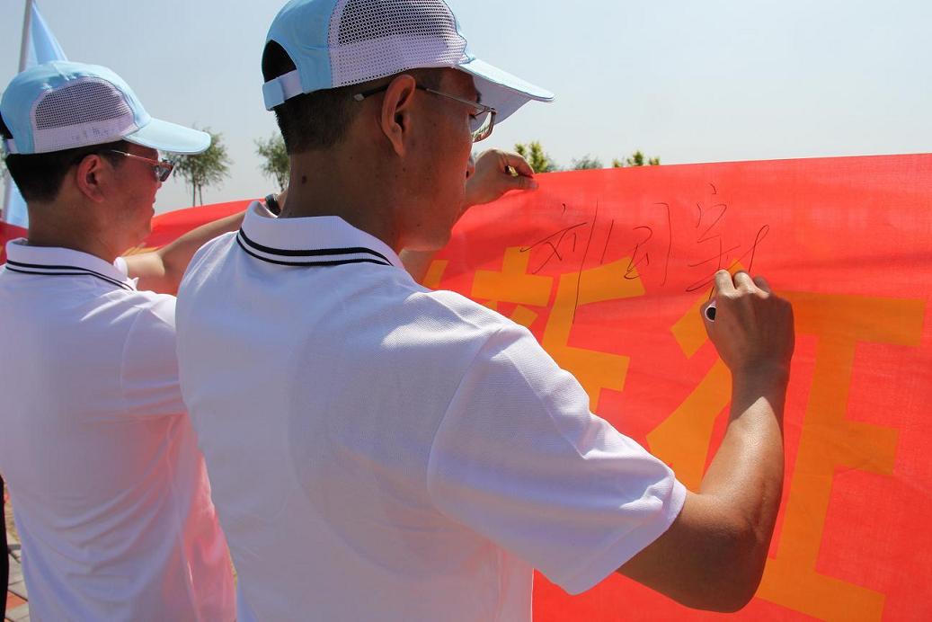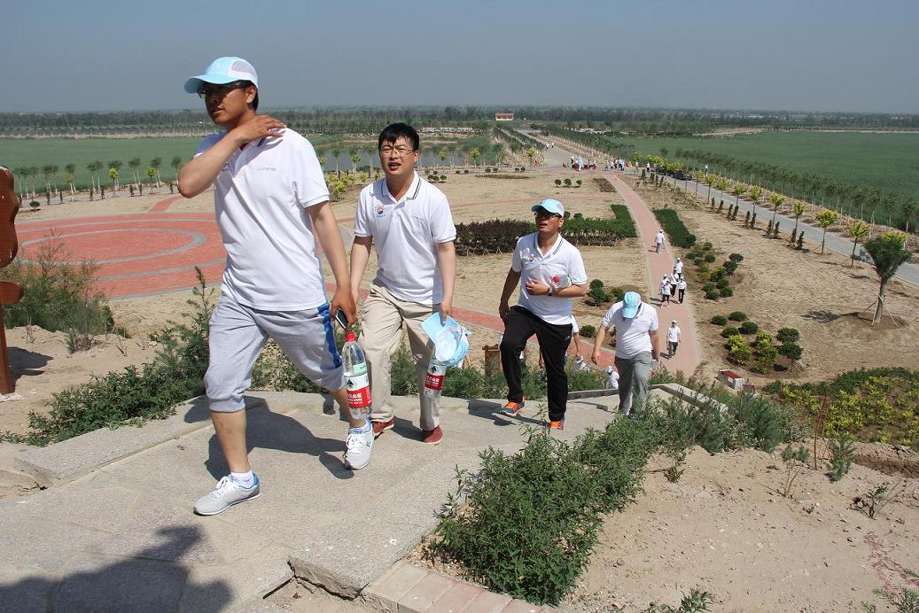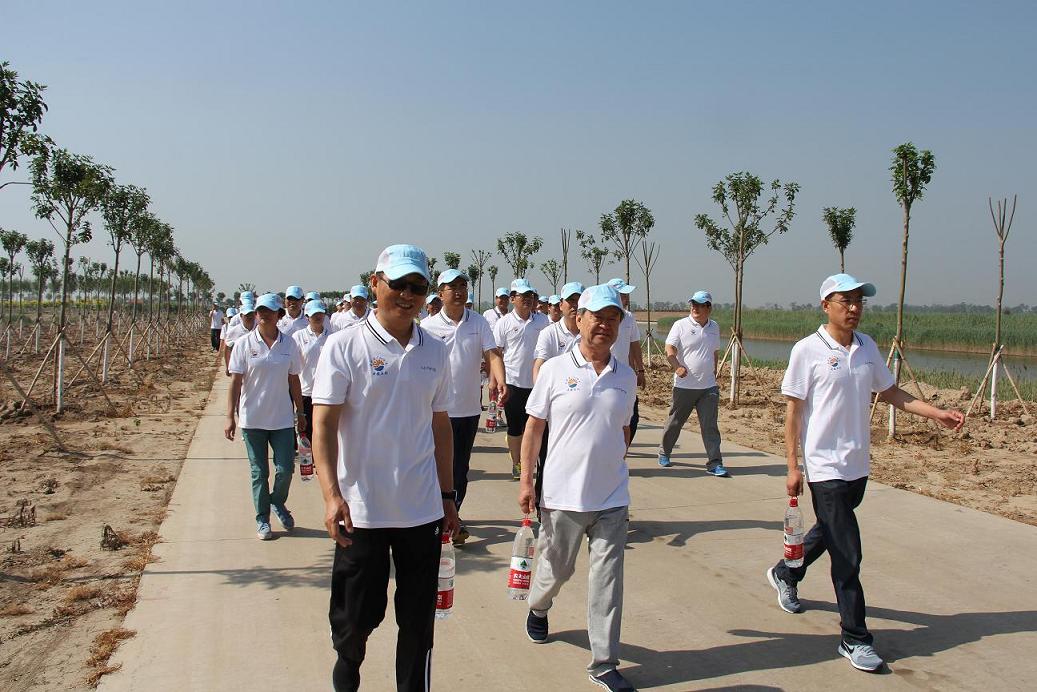 本次徒步行活動路線全程12公里,在集團董事長的帶領下,所有參與活動人員無懼炎炎烈日,個個精神抖擻,在汗水、歡笑與堅持的陪伴下,僅一小時有余便完成了前半程的路途。在風景秀美、鳥語花香的觀鳥臺下,所有人員進行了簽名活動,并爬上數十米高的觀鳥臺一覽濕地郁蔥美麗風景。短暫的休息調整,返程路又始于我們足下。萬余米的行程,歷時2個多小時,全部參與者無一例外的全部順利走完,標志著此次活動的圓滿完成。