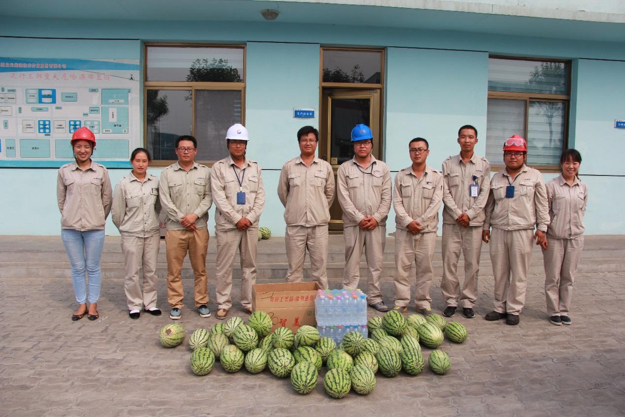 公司工會深入基層進(jìn)行慰問,為一線員工及施工隊伍送去西瓜、礦泉水等消暑食品,使堅守在檢修現(xiàn)場的員工清涼度過炎炎夏日。