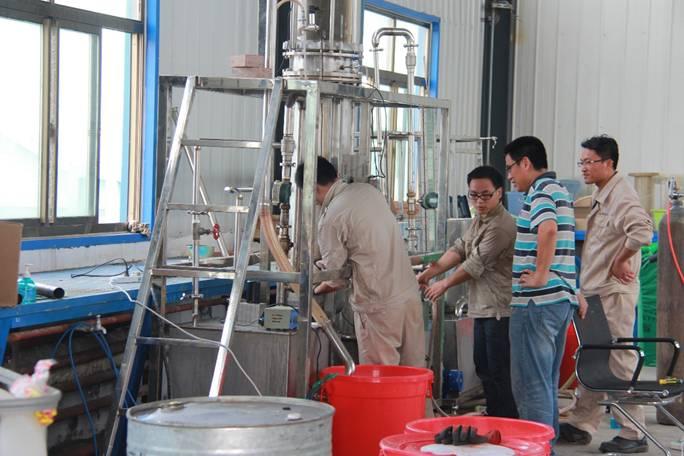 7月27日至8月2日,在新啟元研究中心,由新啟元公司與天津大學研究院共同研發的新式硫酸烷基化反應器項目正在緊張的試驗階段。