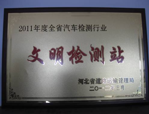 近日,臨港華誠必達(dá)汽車綜合性能檢測有限公司被河北省道路運(yùn)輸管理局授予2011年全省汽車檢測行業(yè)“文明檢測站”榮譽(yù)稱號。