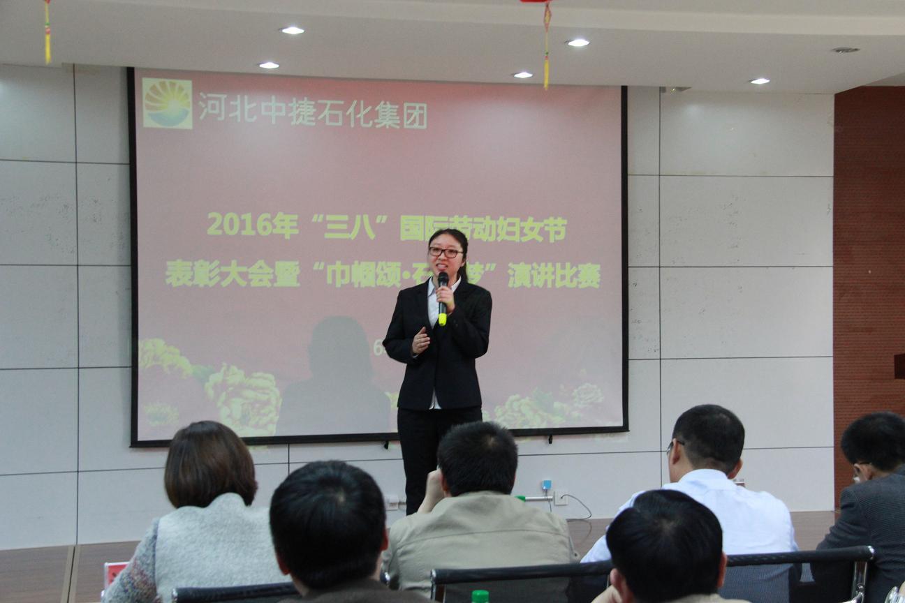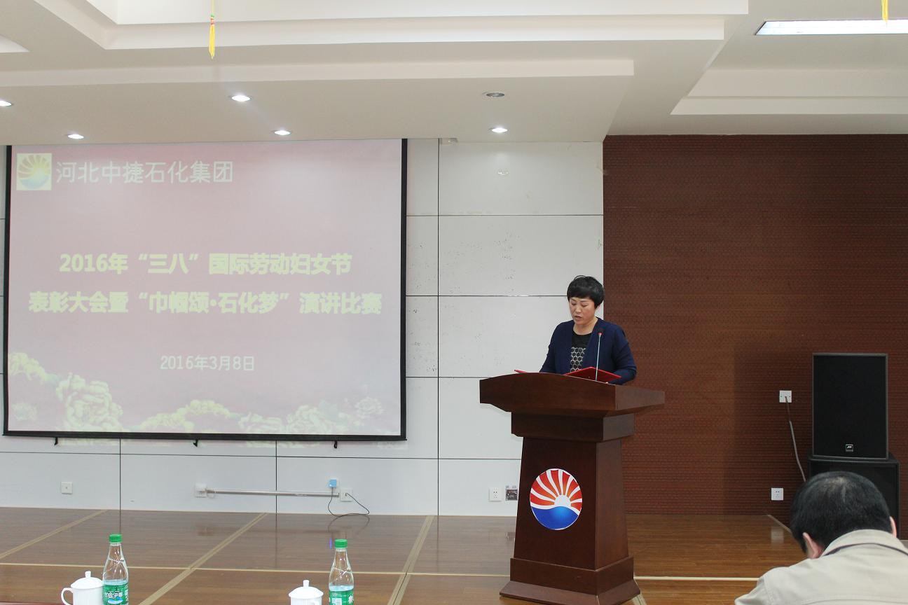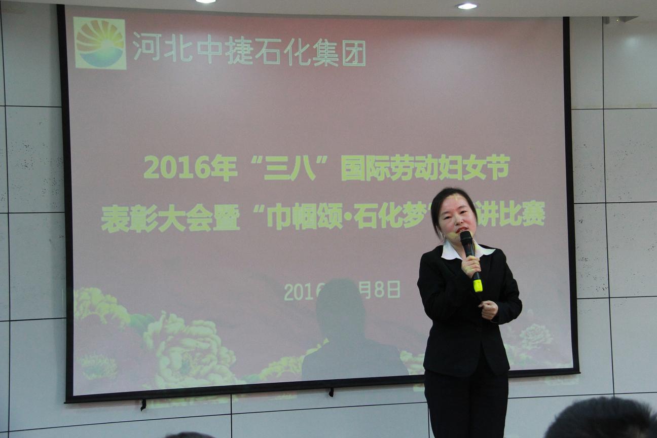 3月8日,是國(guó)際勞動(dòng)?jì)D女節(jié),為了讓公司的女工度過(guò)一個(gè)輕松快樂(lè)的“三?八”婦女節(jié),同時(shí)表彰先進(jìn)女工,河北中捷石化集團(tuán)2016年“三八”婦女節(jié)表彰大會(huì)暨“巾幗頌?石化夢(mèng)”演講比賽于3月8日下午隆重舉行,集團(tuán)公司及各所屬單位領(lǐng)導(dǎo)、嘉賓評(píng)委、員工代表共計(jì)70余人參加了此次會(huì)議。