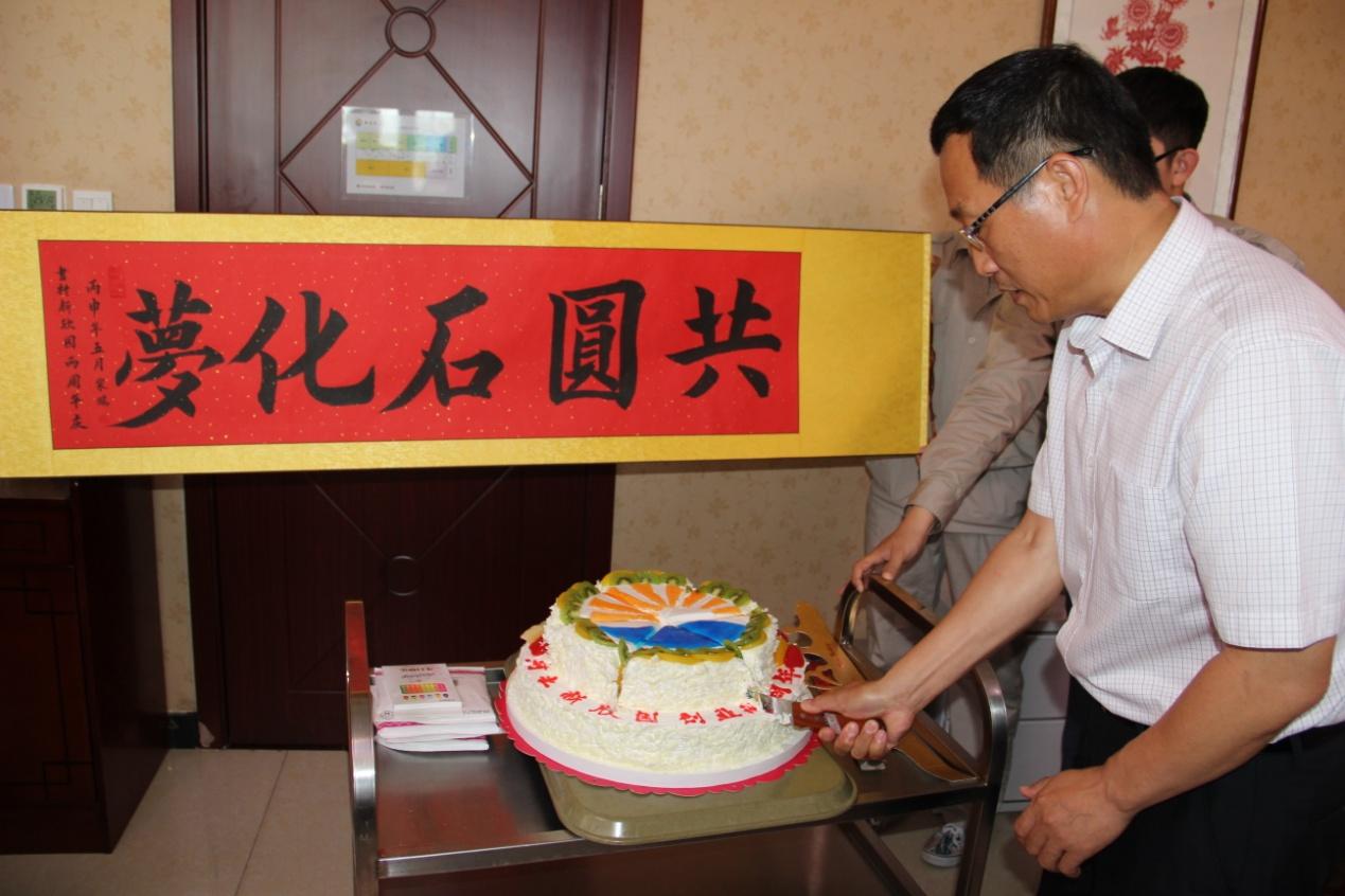 會后,集團公司領導、各兄弟單位總經理及新欣園公司干部職工代表在新啟元餐廳共慶新欣園兩周歲生日,集團公司總經理于國臣代表集團董事長切開新欣園兩周歲生日蛋糕,并向伙伴們送去祝福。