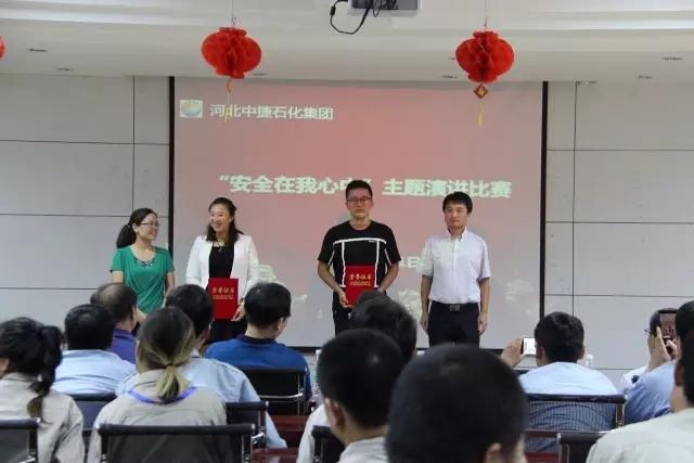 最后,各級領(lǐng)導(dǎo)為參賽選手頒獎并合影留念,同時標(biāo)志著河北中捷石化集團(tuán)“安全在我心中”主題演講比賽圓滿落下帷幕。