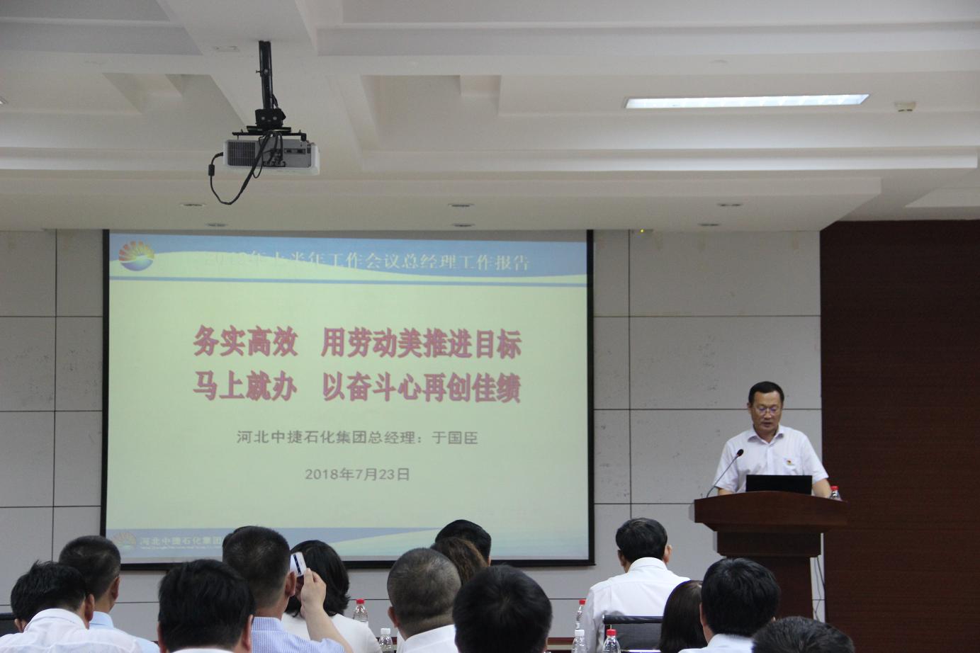 會議上,于總首先作2018年上半年工作報告,對集團經營、建設、管理情況進行了全面回顧和總結性概述,同時提出下半年工作總體思路,并對各項工作進行精心安排部署。于總在報告中指出,2018年下半年已經開啟,我們要在回顧和總結中理清思路,再接再厲,更加堅定完成全年各項任務目標的信心和決心,全體伙伴更要時刻牢記董事長的諄諄教導,勠力同心、眾志成城,以勞動者之美和奮斗者之心全力以赴實現石化夢。
