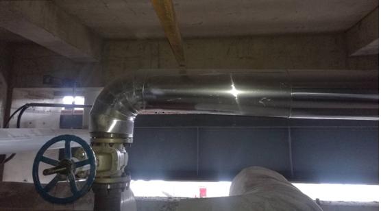 新欣園150噸鍋爐裝置設有一臺低壓除氧器,目的是通過低壓蒸汽加熱鍋爐給水,在一定壓力下達到水的飽和溫度點,析出水中的溶解氧,從而避免鍋爐承壓部件避免氧腐蝕。低壓除氧器原加熱蒸汽是通過工業汽輪機背壓后,產生0.1MPa的蒸汽作為熱源,工業汽輪機設計是汽輪機、電動機、給水泵的三機組,通過工業汽輪機做功,減少電動機的功率,拖動高壓給水泵,節約部分電耗。鍋爐的燃氣改造,蒸汽成本直線上升,三機組的運行已經不能起到節能的作用。