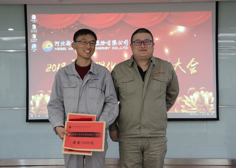 11月4日,新欣園公司2019年合理化建議及創新先鋒個人表彰大會在中控室第二會議室隆重召開,會議對2019年通過驗收的31項優秀合理化建議及2名創新先鋒個人進行了獎勵表彰。公司總經理王政、副總經理李冬峰、副總經理劉廣杰、黨支部書記馮國衛及干部職工代表共60人參加了會議。