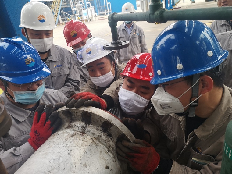 連日來,公司上下按照確保“安全、質量、進度”的整體要求,在統一的協調指揮下,干部員工同心協力、不畏艱苦,先后實施了換熱器管束更換、催化劑裝填等一系列檢修項目。過程中隨處可見黨員干部的身影,哪里最艱苦,哪里有困難,他們就出現在哪里,與技術人員一同解決問題,與青年職工一起并肩奮戰,激發了青年職工苦練內功、愛崗敬業的決心和信心,真正體現了黨員干部的模范帶頭作用。