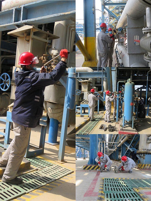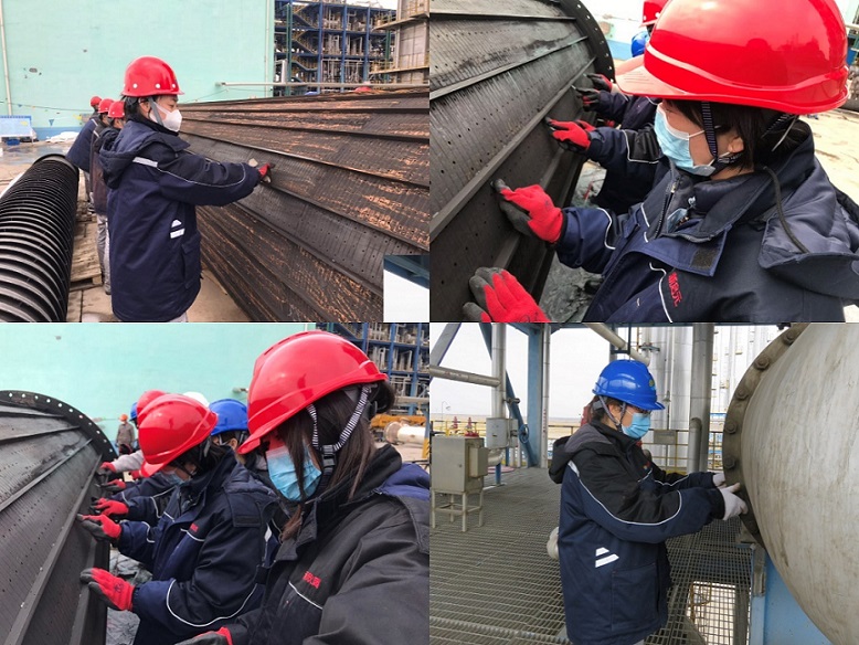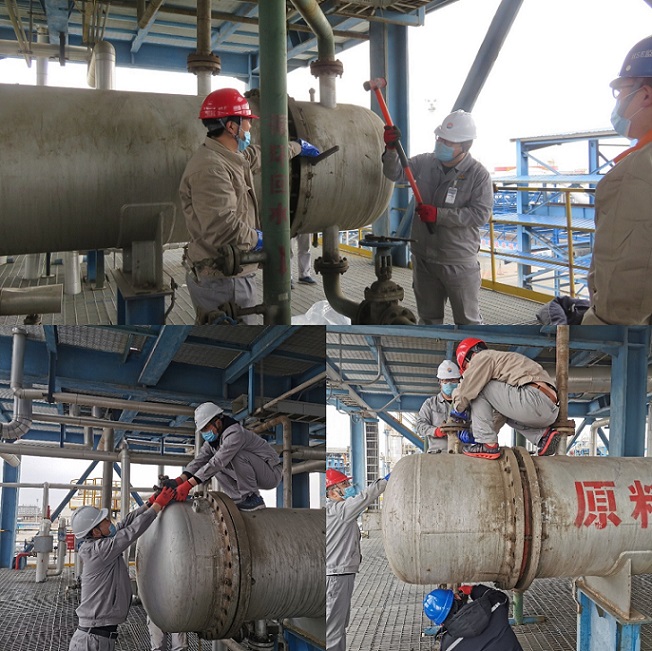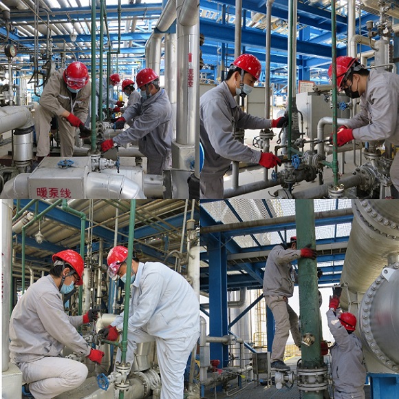 拆螺絲、換閥門、疏通管線、清理過濾器……無論公司領導,還是職能后勤,抑或生產一線,伙伴們都在大力弘揚艱苦奮斗的工作作風,自力更生,厲行節約,自主承擔裝置檢修項目,節約檢修費用。檢修期間,伙伴們每天與朝陽為伴、與落日為伍,大伙爭著干、搶著干、比著干,齊心協力打好檢修攻堅戰。