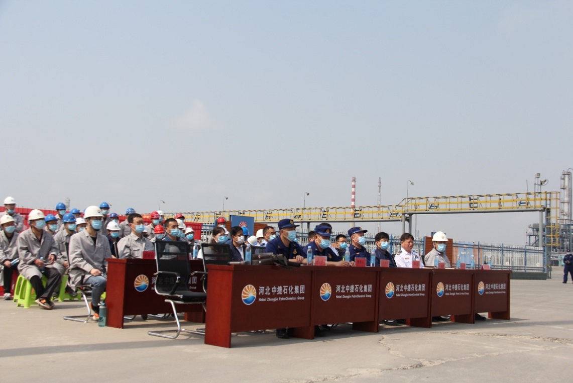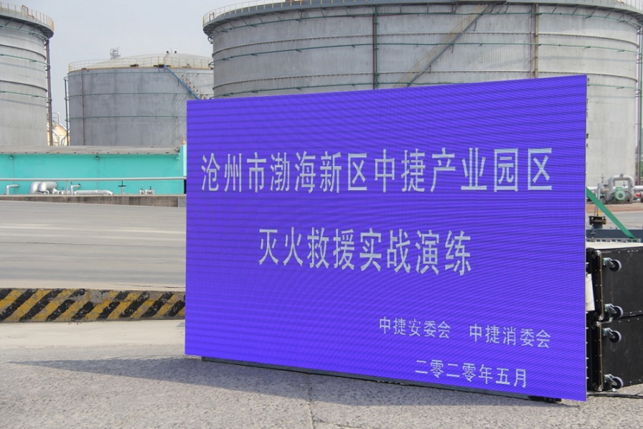 上午10:00,現場總指揮拉響警報后,演練準時開始。情景模擬儲罐因雷擊出現密封圈點式火災,并引發泄漏著火事故,因企業自身應急救援力量不能及時控制火勢,情況緊急擴大響應,中捷產業園區啟動應急救援預案,調集政府消防隊、周邊企業消防隊、120救護車進行緊急救援,各救援隊伍立即投入到救援行動中,最終將傷員救出,火災得到控制。通過此次演練,檢驗了園區危險化學品應急預案的科學性和實用性,進一步提高了企業面對突發事件的應急處理能力和協調作戰能力,以及危化品火災事故應急管理救援水平,進一步提升了應急救援體系和應急預案的可行性、緊密性、可靠性。