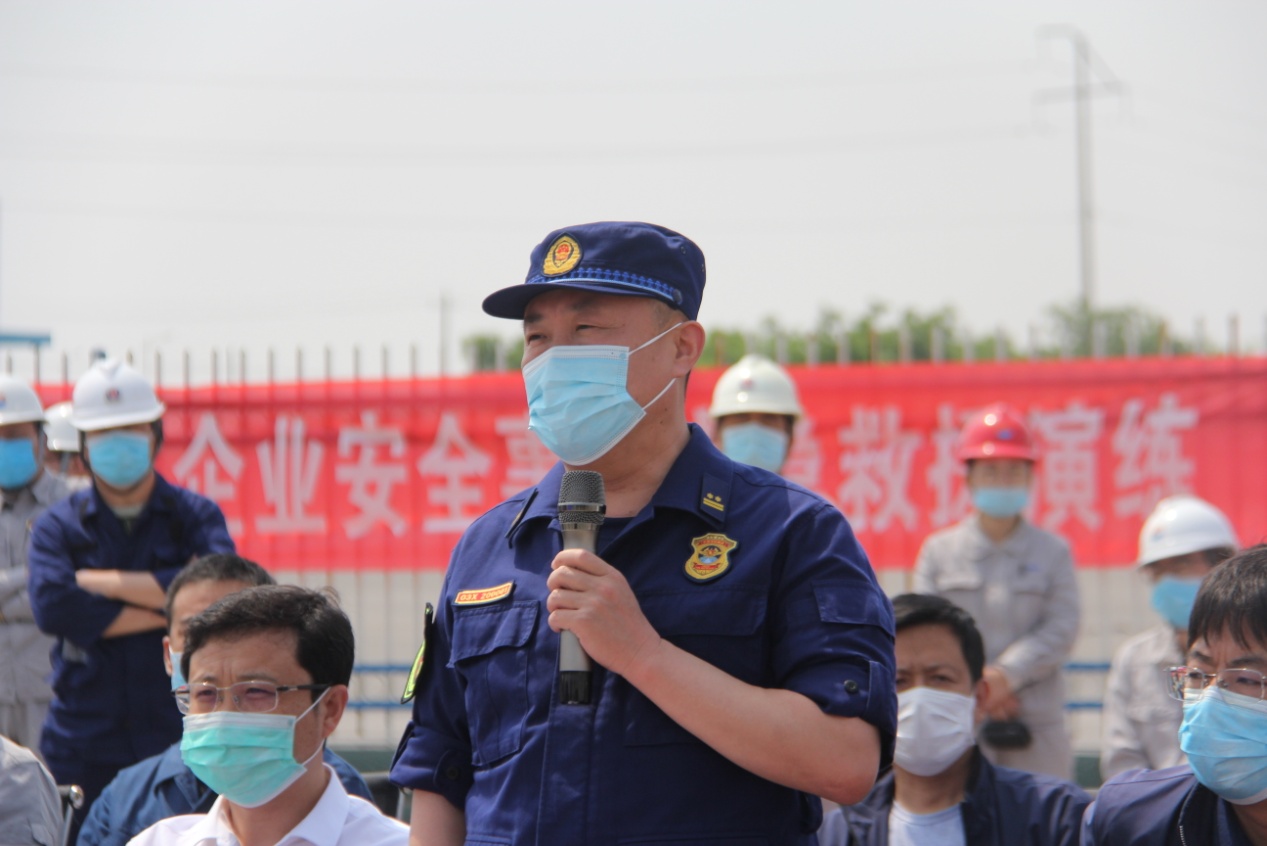 王偉支隊長對此次演練進行點評。他指出:此次應急演練非常具有針對性,各參演單位精心組織、周密安排、密切配合,達到了預期效果。此次演練是深入貫徹落實習近平總書記對安全生產工作的重要指示精神,促進了政府消防隊伍與企業消防隊伍之間協同作戰能力及水平的大幅提升。今后,我們要把功夫下在平時,提升救援隊伍的精神面貌,強化應急救援專業訓練,針對突發事件應急救援工作面臨的新形勢、新情況,崗位練兵和聯合實戰要相結合,做到磨練隊伍、總結經驗、提升能力,一旦發生事故,確保能夠快速響應,科學救援,將人員傷亡和財產損失降到最小。同時針對演練中暴露出的問題要認真總結,加以改進,確保演練效果真正落到實處。