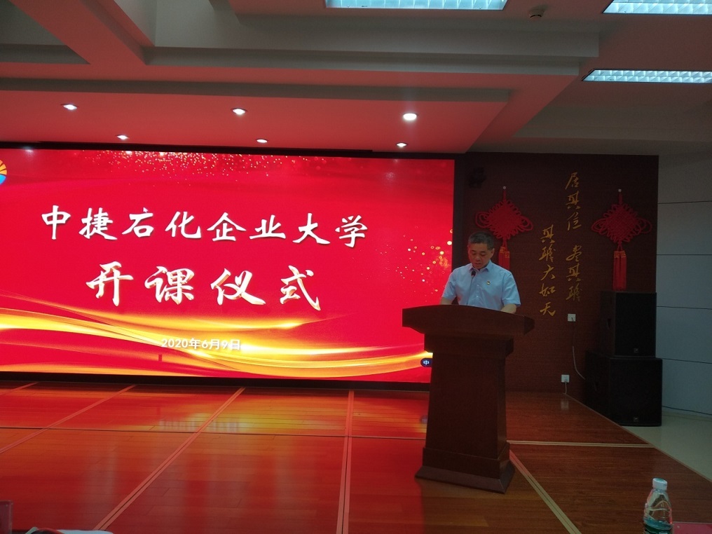 集團總經理喬樹華為中捷石化企業(yè)大學開課儀式作重要講話。喬總首先代表集團公司全體人員向合作伙伴——格局商學院及諸位老師表示真摯的感謝,并預祝雙方的合作更加愉快,祝愿彼此在攜手共進的道路上一起成長。