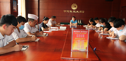華悅凱旋酒店訊(通訊員 魏歆凝)7月27日上午,華悅凱旋大酒店主管以上管理人員對煙臺會議集團董事長重要講話《危機育新機 變局開新局》和總經理工作報告《拼勇氣 搶財氣 闖志氣》進行學習貫徹。在學習中理解,在探討交流中提高,真正將學習會議精神落到實處。