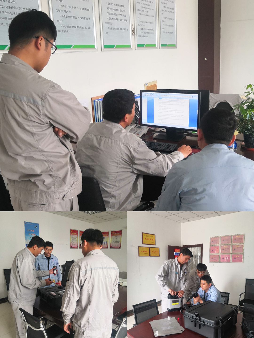 HSE工程師田永振解讀了公司下發(fā)的LDAR檢測管理制度,并對檢測儀器的配件組成、使用方法進行了細致的講解。隨后帶領(lǐng)各裝置工程師到污水裝置進行自檢教學,首先將檢測儀器在可能泄漏的設(shè)備表面確定檢測點位,并將采樣探頭對準檢測點位,將檢測儀置于度數(shù)最高值處并在儀器響應時間內(nèi)至少讀數(shù)兩次,記錄最大值為此處檢測得到的泄漏值。此次檢測共查出6項泄漏點,并記錄在LDAR自行檢測臺賬,其中5項均已整改完成,1處掛牌。隨后各裝置工程師按照公司及部門的要求對裝置區(qū)易泄漏區(qū)開始進行自檢,將泄漏檢測結(jié)果列入臺賬整理,周期為7天。