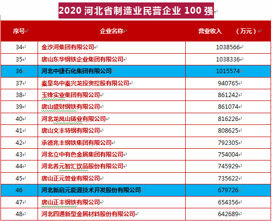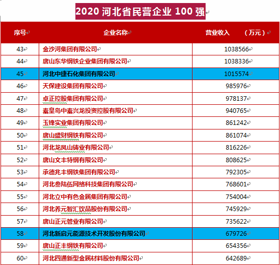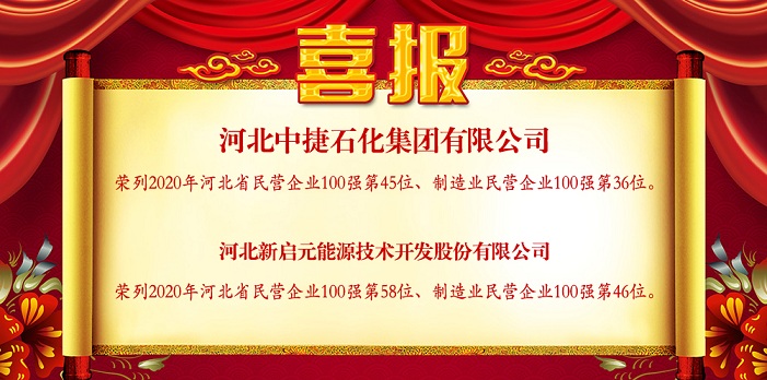 新啟元公司訊(通訊員 王世明)9月25日,河北省民營企業(yè)百強暨民營企業(yè)社會責任報告發(fā)布會上,河北省工商聯(lián)發(fā)布了2020年河北省民營企業(yè)100強榜單、制造業(yè)100強榜單、服務業(yè)100強榜單。河北中捷石化集團有限公司、河北新啟元能源技術開發(fā)股份有限公司榜上有名。