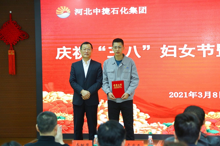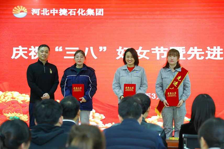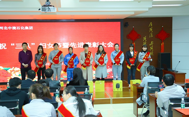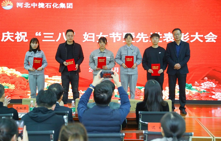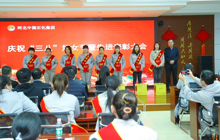 集團公司訊 3月8日上午,河北中捷石化集團在科研樓六樓會議室組織舉辦了慶祝“三八”婦女節暨先進表彰大會。集團公司黨政領導,各黨(總)支部書記、工會主席,先進女職工、征文獲獎者40余人參加。中捷產業園區總工會、宣傳部、司法局相關領導出席了本次活動。