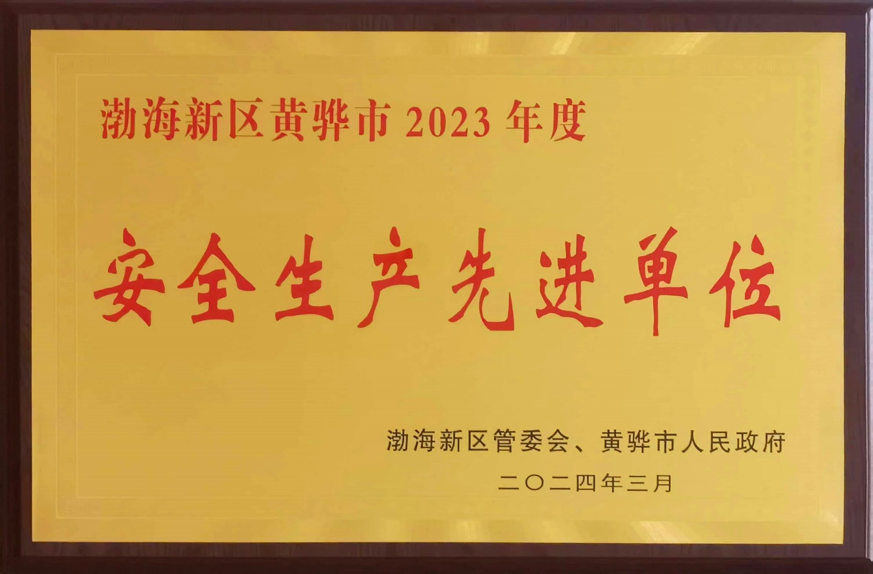 新欣園公司訊 近日,經渤海新區管委會、黃驊市人民政府綜合評定,授予新欣園公司“2023年度安全生產先進單位”榮譽稱號。