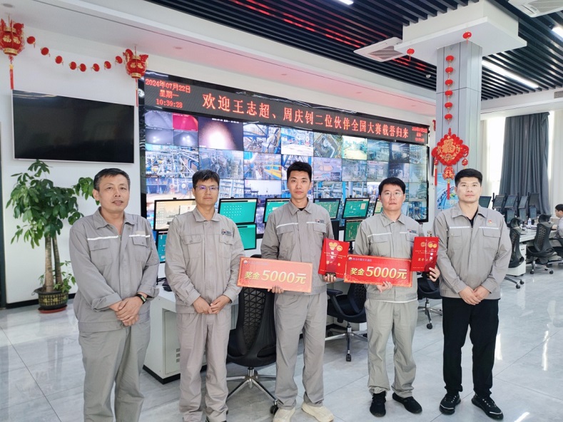 為深入落實集團人才強企工作目標,加強對技能人才的培養和激勵,7月22日,集團工會主席牛旭宗,新啟元公司總經理劉華冰,新啟元公司工會主席張金甫在新啟元中控室現場為兩名伙伴頒獎,發放5000元現金,并予以工資上調2檔獎勵,以此祝賀兩位伙伴取得的優異成績,號召伙伴們進一步深入落實“認真、真實、實在”的企業精神和“學習是石化園永不竣工政治工程”的學習理念。牛旭宗在頒獎過程中鼓勵兩位伙伴,希望其充分發揮榜樣力量,將親身經歷的大賽經驗帶到日常學習和工作中。天道酬勤天可見,持之以恒信念足,要在競爭中學習、在學習中成長、在成長中收獲,不斷超越自我、勇于向前,用滿腔熱情再接再厲、再創佳績。劉華冰強調,新啟元公司將以此次大賽為契機,以公司“職能大講堂”為先導,梳理完善公司培訓體系,用真抓的實勁、敢抓的狠勁、善抓的巧勁、常抓的韌勁打造全員學習、全員競爭、全員提升的的新局面,補齊員工知識短板,不斷提升員工技能水平,為公司發展奠定堅實的人才基礎。