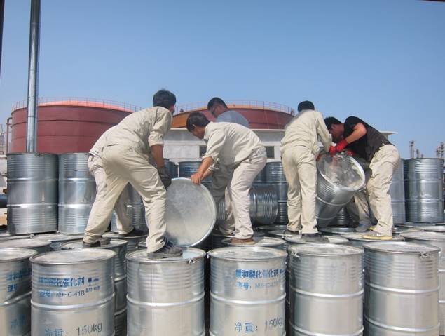 烈日炎炎,他們汗流浹背,沒有人喊累,他們喊著口號將一桶桶300斤的催化劑在尾氣回收平臺碼放整齊,為催化劑裝填工作提前做好準備,為反應器的正常運行打下基礎,從而保證蒽油加氫裝置的成功開車。