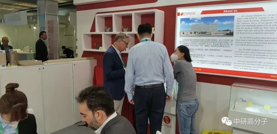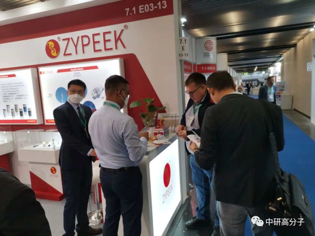 我司攜帶PEEK純樹脂顆粒(G系列)、純樹脂粗粉(P系列)、純樹脂細(xì)粉(PF系列)、玻纖增強(qiáng)(GL系列)、碳纖增強(qiáng)(CA系列)、耐磨(FC系列)等明星產(chǎn)品亮相在德國展館7.1 E03-13。中研股份在此次展會(huì)上展出的PEEK原料,成為展會(huì)上的寵兒,在展會(huì)的前幾天有各國客戶對(duì)此產(chǎn)生濃厚興趣,并達(dá)成合作意向。