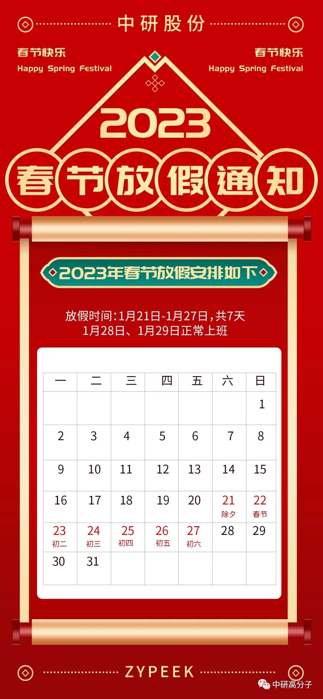 在2023年春節(jié)到來之際,感謝大家一年來對中研的支持和厚愛。中研股份全體人員恭祝大家:“新春愉快,闔家幸福,萬事如意!