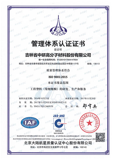 吉林省中研高分子材料股份有限公司,成立于2006年。2015年正式登陸新三板,2023年9月20日在上海證券交易所科創板上市,股票簡稱:中研股份,證券代碼:“688716”。注冊資本12168萬元。位于長春市綠園經濟開發區,廠區占地面積27103平方米。公司現有生產能力為年產聚醚醚酮(PEEK)1000噸。中研股份是集聚醚醚酮(PEEK)研發、生產、銷售為一體的高新技術企業。
